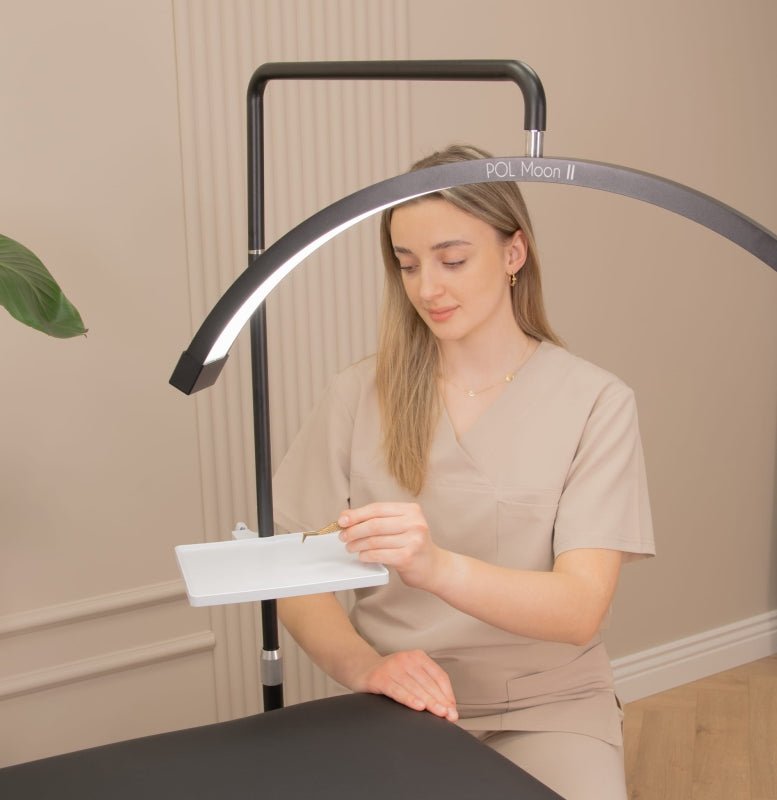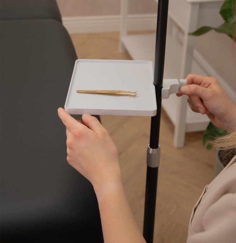 Diese praktische Lösung eignet sich sowohl für Profis als auch für Personen, die Ordnung und Ergonomie bei der Durchführung von Behandlungen bewahren möchten. Das universelle Regal für Kosmetiklampen vereint Funktionalität, Robustheit und einfache Handhabung in einem Zubehörteil.