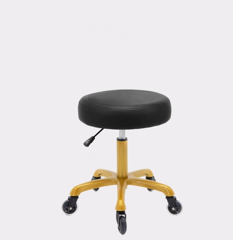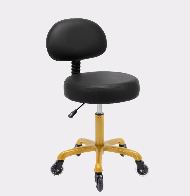 Flacher Kosmetikhocker mit Rückenlehne Schwarz - Silber Flacher Kosmetikhocker mit Rückenlehne Schwarz - Gold