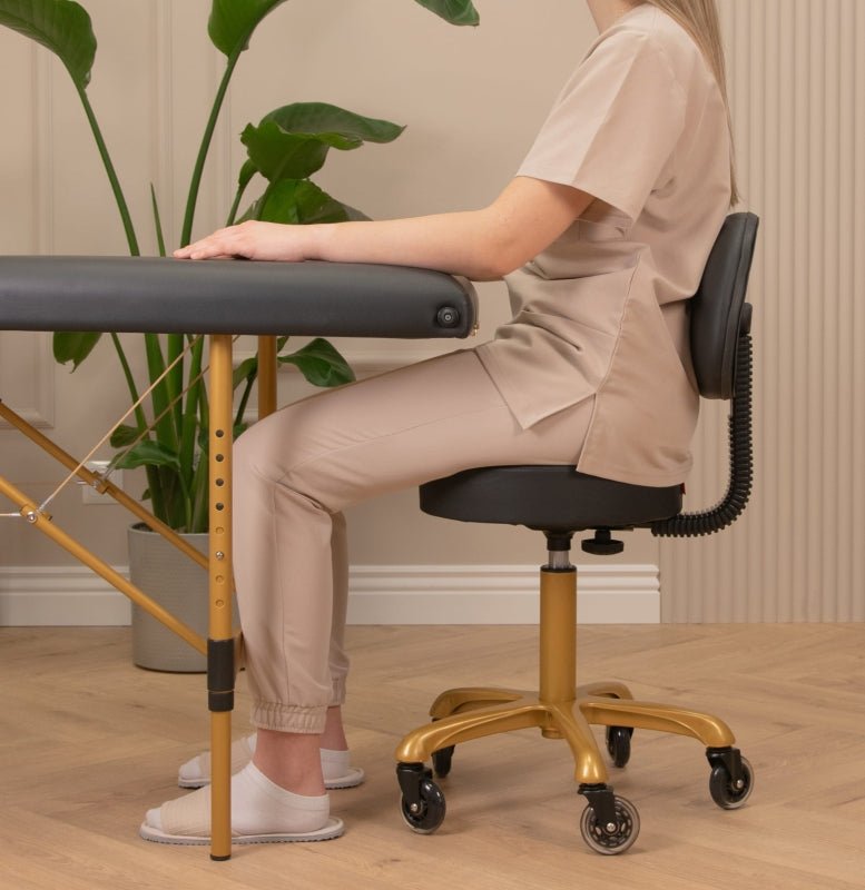 • Stabile Rückenlehne, die die Wirbelsäule während der Pausen zwischen Behandlungen unterstützt.